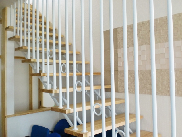 ステンレス角パイプたて格子の階段手摺 お客様の想いを形にするセイコーステンレス